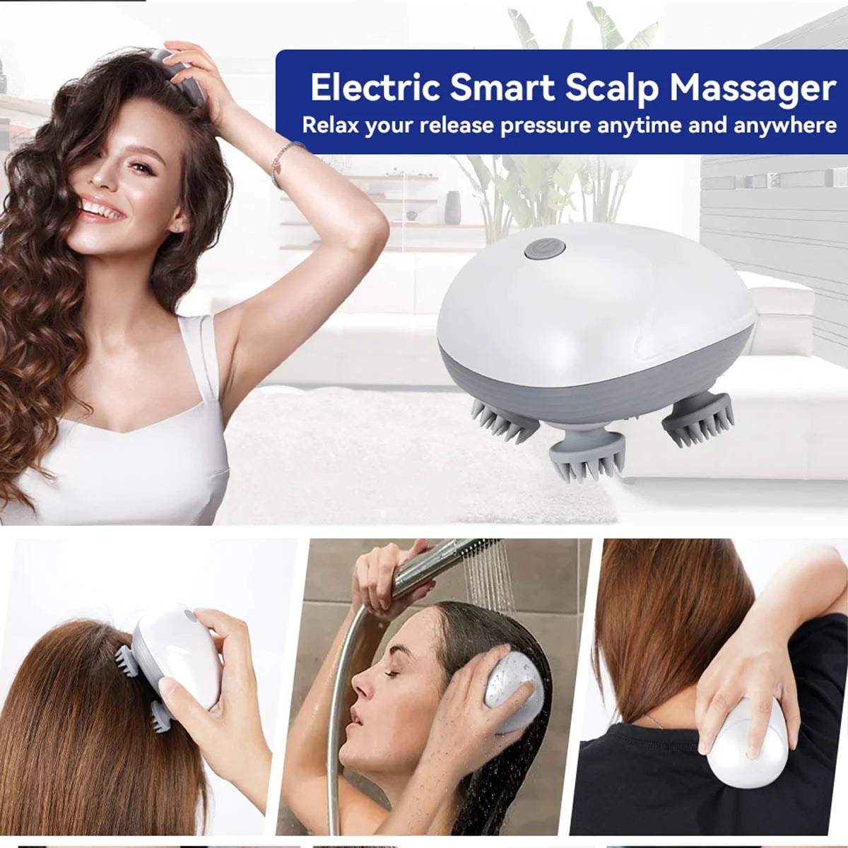 This rechargeable head massager offers 4 Speed modes deep scalp kneading and promotes hair growth.portable and powerful, it's perfect for stress relief and a soothing head massage