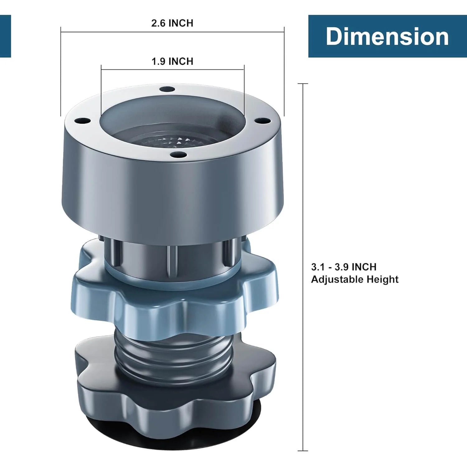 Washing Machine Vibration Pads - Adjustable Dryer Shock & Noise Cancelling Pads, Anti Vibration Pads for Washing Machine Support, Height Adjustment Feet for Refrigerators (4 Pcs Set)